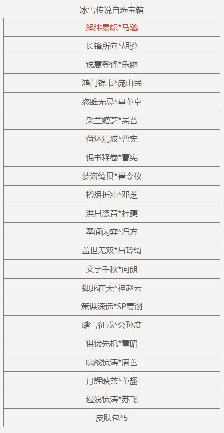 冬至武将自选福袋:伍孚、胡遵、高翔、SP关羽、裴秀、孙礼、吴班、是仪、武将招募令*10,任选其一