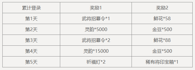 使用女武将完成5局游戏:寒梅*5,灵韵*5000,限完成1次。