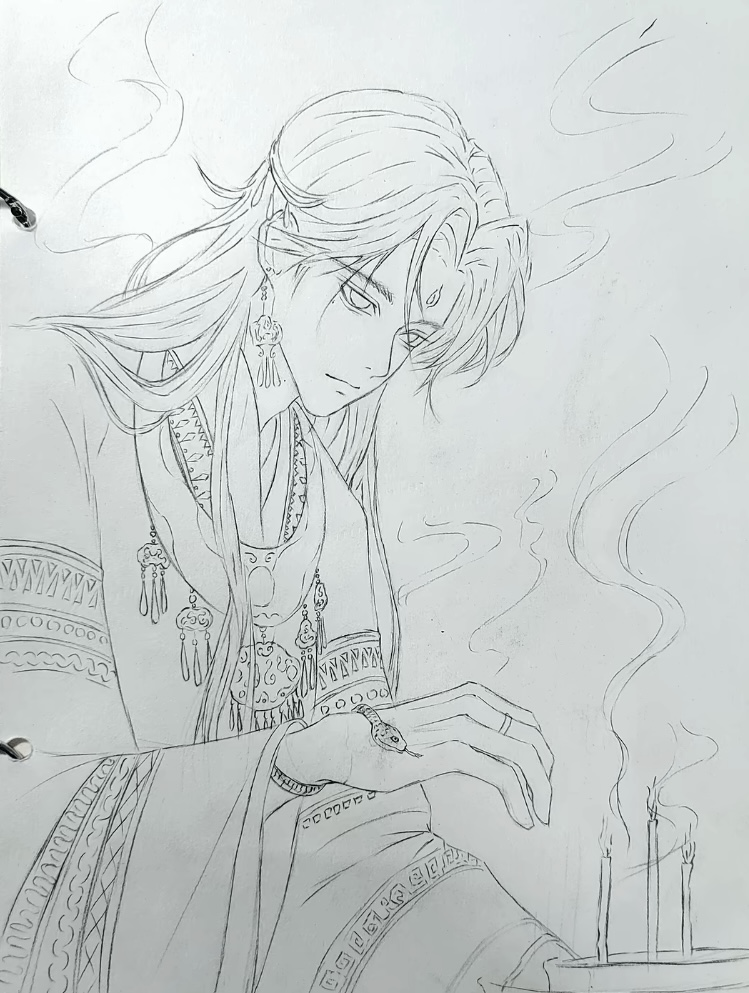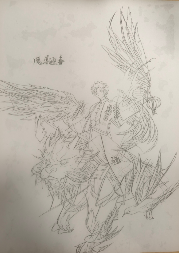1、未上色的作品需补充心仪的色彩,让青鸾的新春造型更鲜活亮眼。