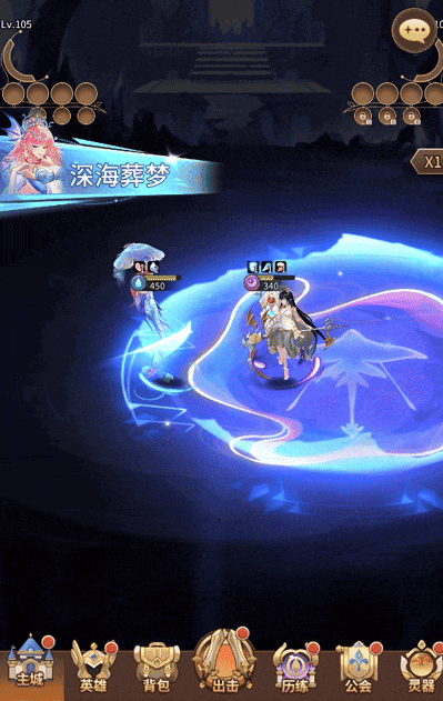 【深海葬梦】:对敌方全体造成塞壬生命值上限一定比例的真实伤害,并有一定概率使敌方最多3人陷入【溺梦】,并在敌方场上生成持续2回合的【叹息海域】