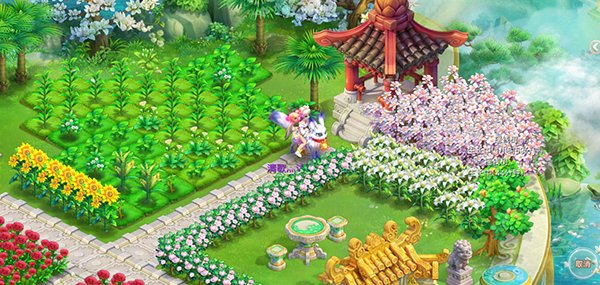 玩家可以在庭院中开垦土地,种上各类蔬菜瓜果,随着庄园等级的上升,能种植的种类和能管理的土地会越来越多。农作物出售可以获得庄园币,庄园币可购买庄园装饰。在御剑的家园里,有庭院,有喷泉,有绿植,有花有草,果蔬品种繁多,还有自带元宝特效的摇钱树,自给自足,多劳多得。