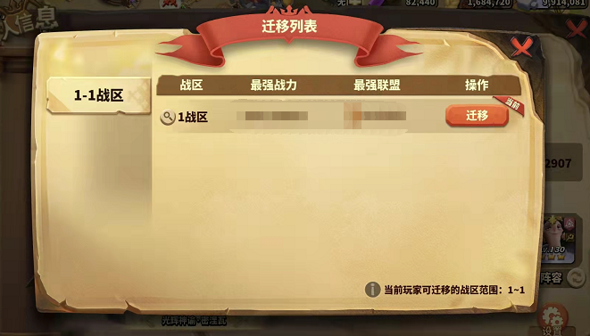 (2)消耗迁移令数量根据玩家当前战区和目标战区的开启时间间隔,以及玩家历史最高战力在目标战区的排名情况共同决定。