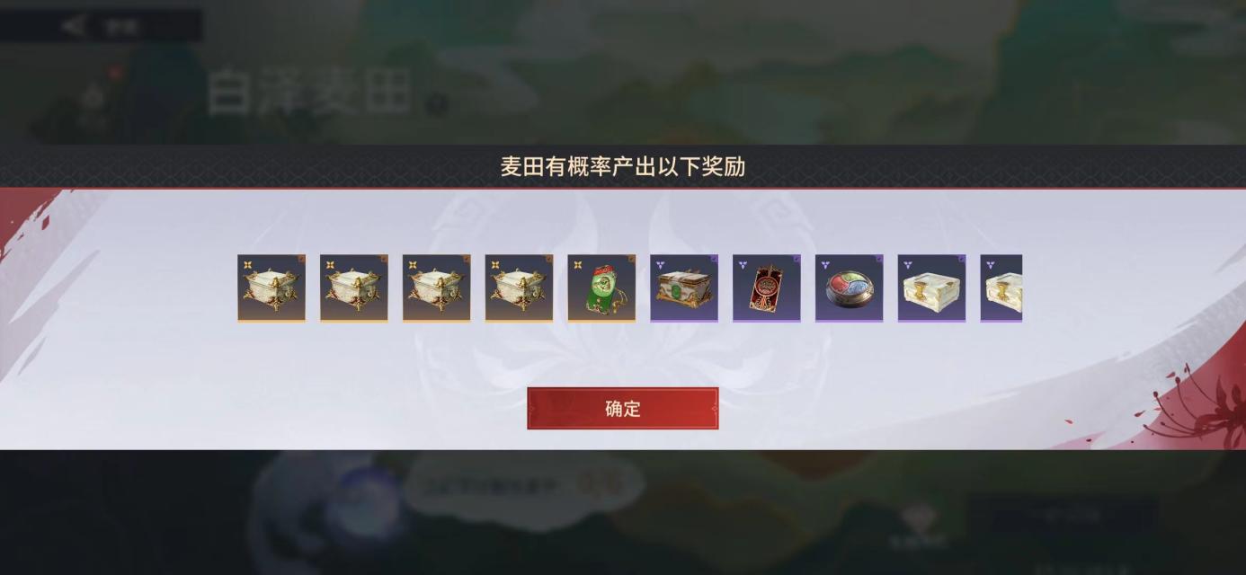 从主页进入活动,白泽麦田收麦有概率获得瑞霖宝箱。
