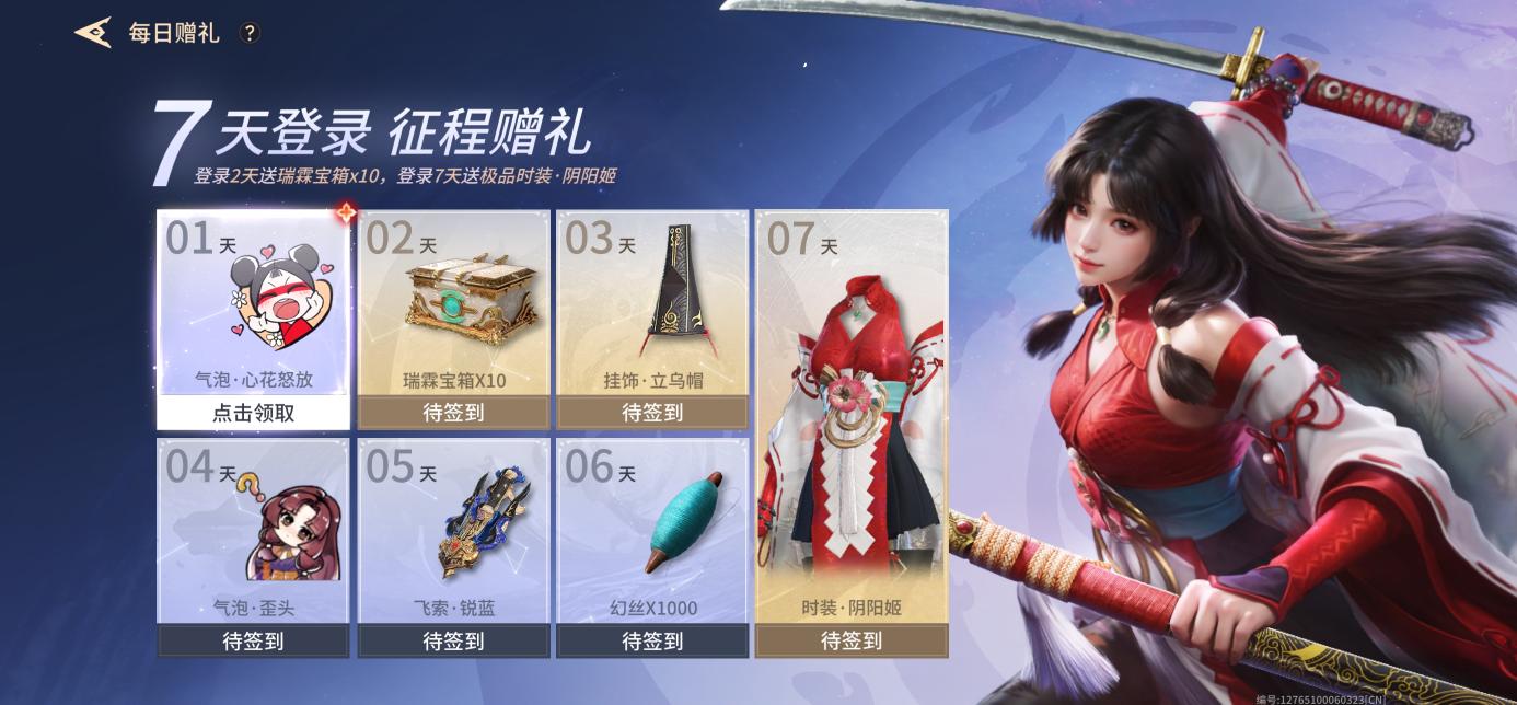 从主页进入初入永劫,进入每日赠礼,签到2天可获得10个瑞霖宝箱。