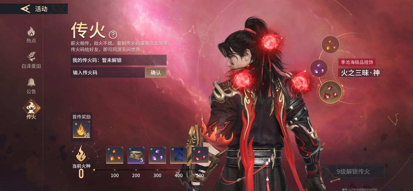 从主页进入活动中心,点击传火,可参与传火活动,可获得火之三昧挂饰和5个瑞霖宝箱。