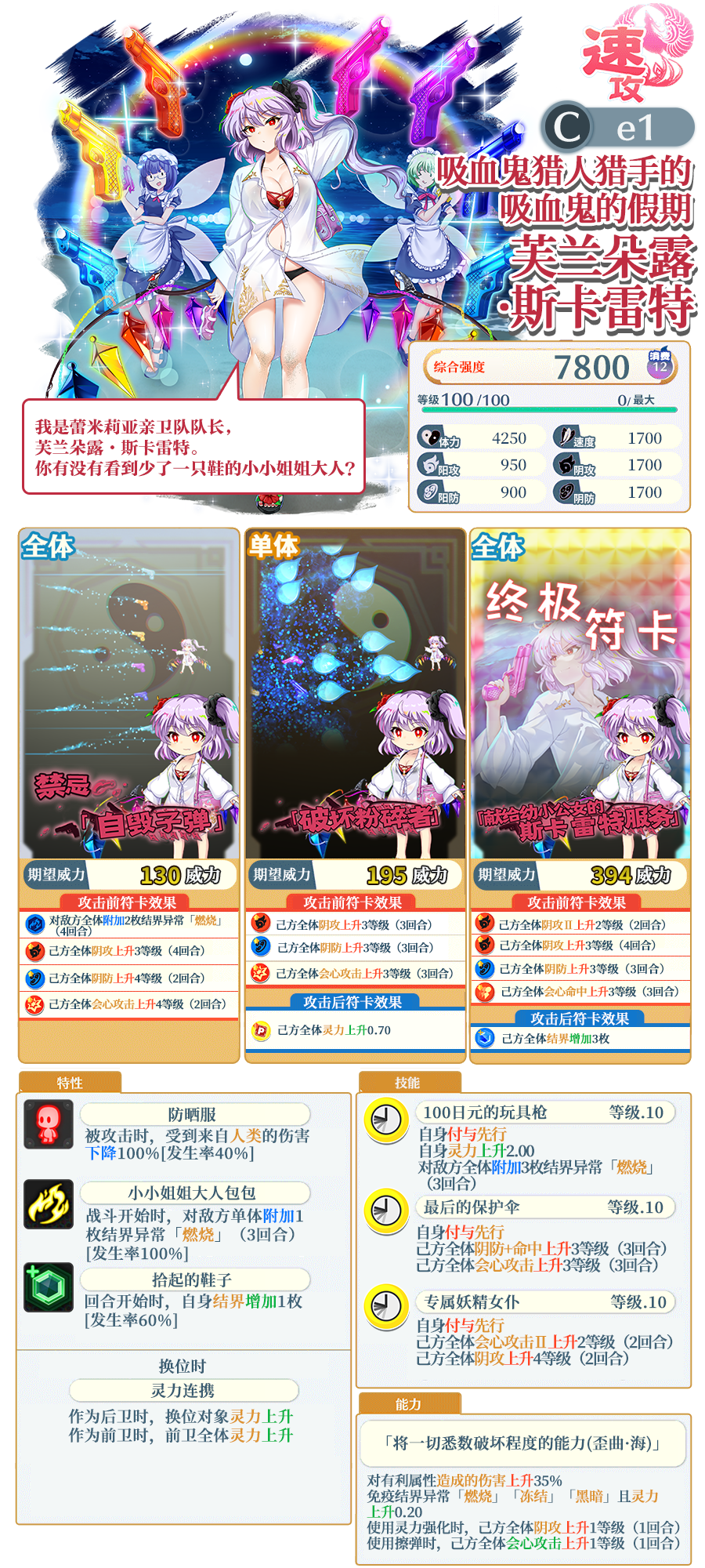 ※「吸血鬼猎人猎手的吸血鬼的假期 芙兰朵露·斯卡雷特」是仅在EPIC限定祈愿中登场的角色。