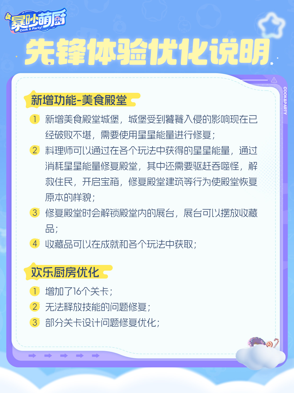 在此,向料理师们同步本次延期的核心优化及新增内容,具体内容可滑动上方图集查看。