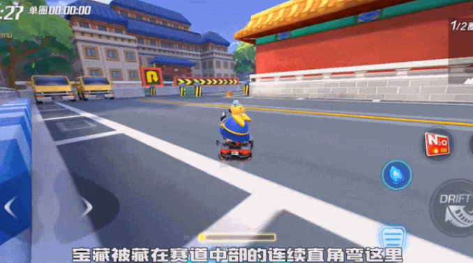 想拿到宝藏的车友们需要注意了,在到达第一个直角弯这里时,向左侧小漂并降低车速,同时将车头向赛道右侧靠近,这样就可以轻松拿到宝藏!