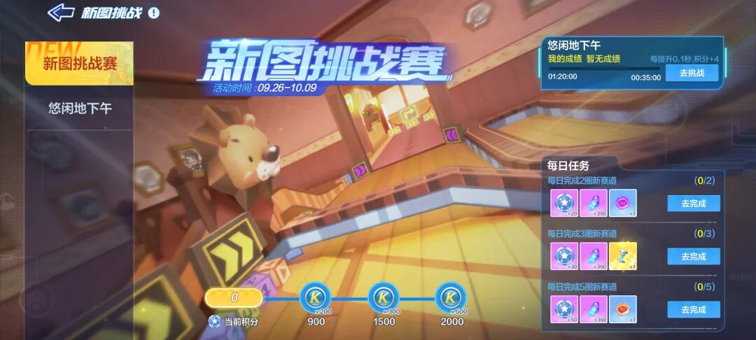 9月26日-10月9日还将开启新图挑战赛,车友们完成新图挑战,即可获得奖励和积分。奖励包括时间沙漏、紫色幸运币和橙色幸运币,其中积分可用于兑换酷币。