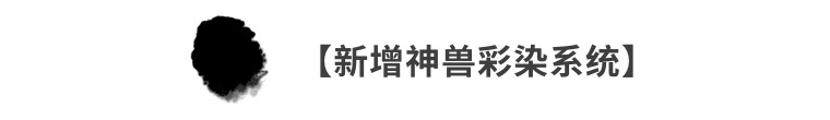 1、新增神兽彩染系统,可消耗对应的神兽染墨进行充能,充能满足后可解锁并使用该神兽形象