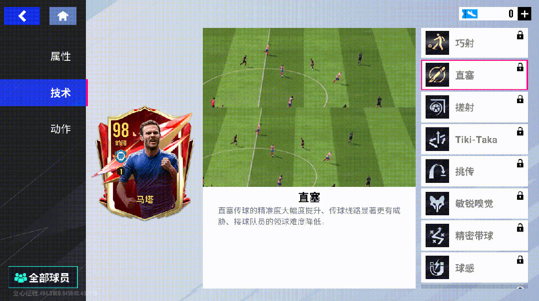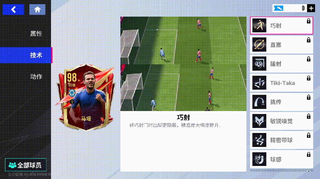 马塔拥有金色技术【巧射】【直塞】,这两项技术极大强化了他在前腰位置上的传射能力,哪怕面对密不透风的防线也总能频频制造杀机。此外,【搓射】【Tiki-Taka】【挑传】【敏锐嗅觉】【精密带球】【球感】等技术能够支撑他在场上施展各路绝技,足以证明他在进攻端的全面性。