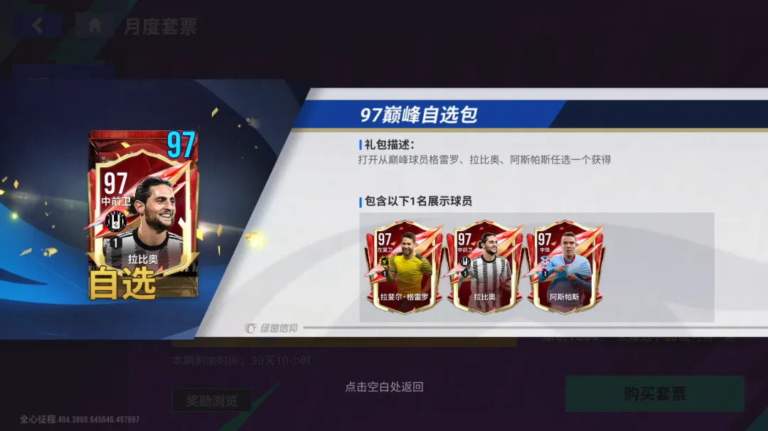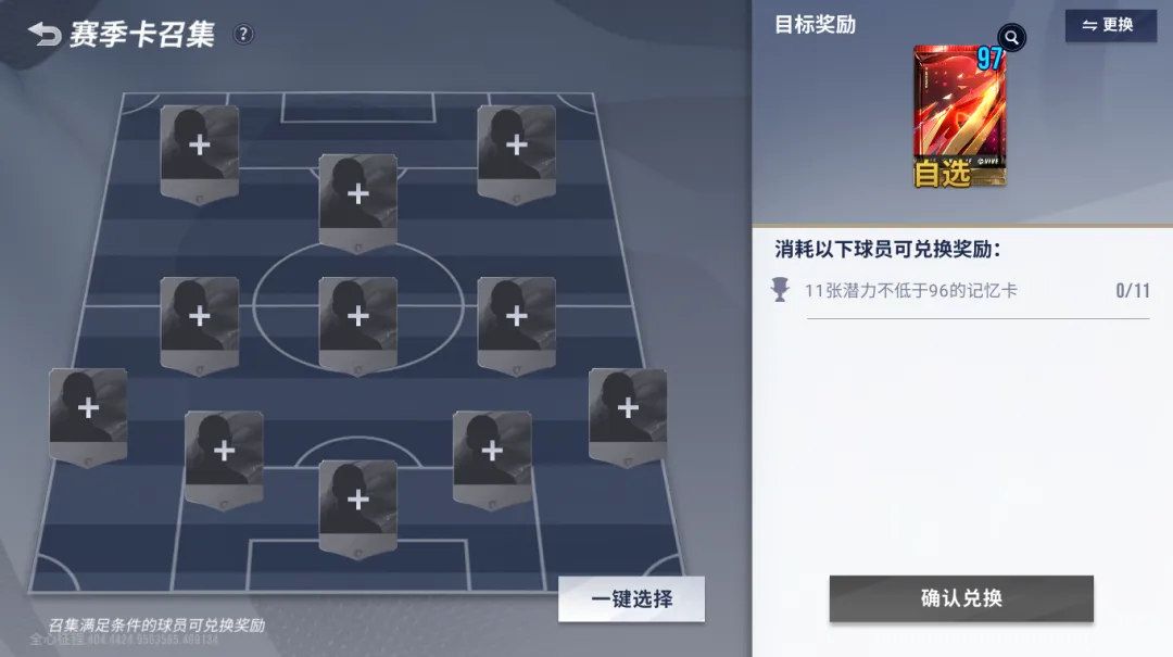 3、【97巅峰自选包】的赛季卡召集挑战达成条件如下: