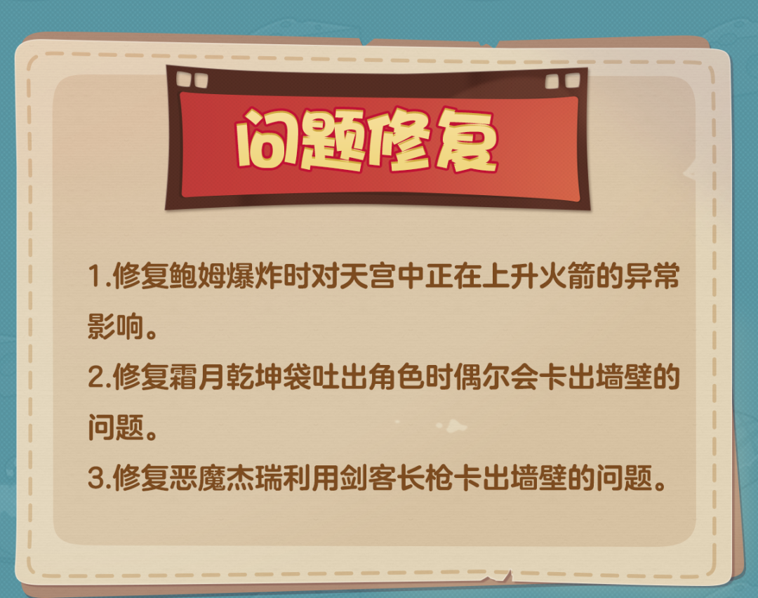 3.修复恶魔杰瑞利用剑客长枪卡出墙壁的问题。