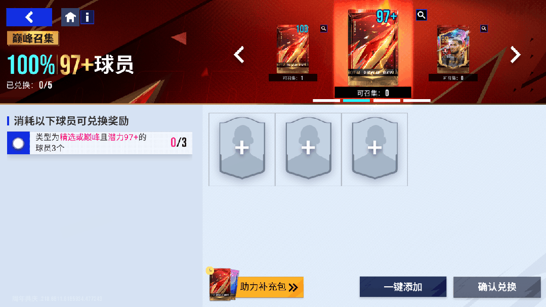【绿茵璀璨球星包】阵容召集挑战将于11月18日11时至11月21日11时开启。活动期间每日可进行5次召集挑战,每日11点刷新,有机会获得【97+巅峰球员】,最高可得【100巅峰球员】。玩家可于商城购买「97精选球员包」用于【绿茵璀璨球星包】兑换。