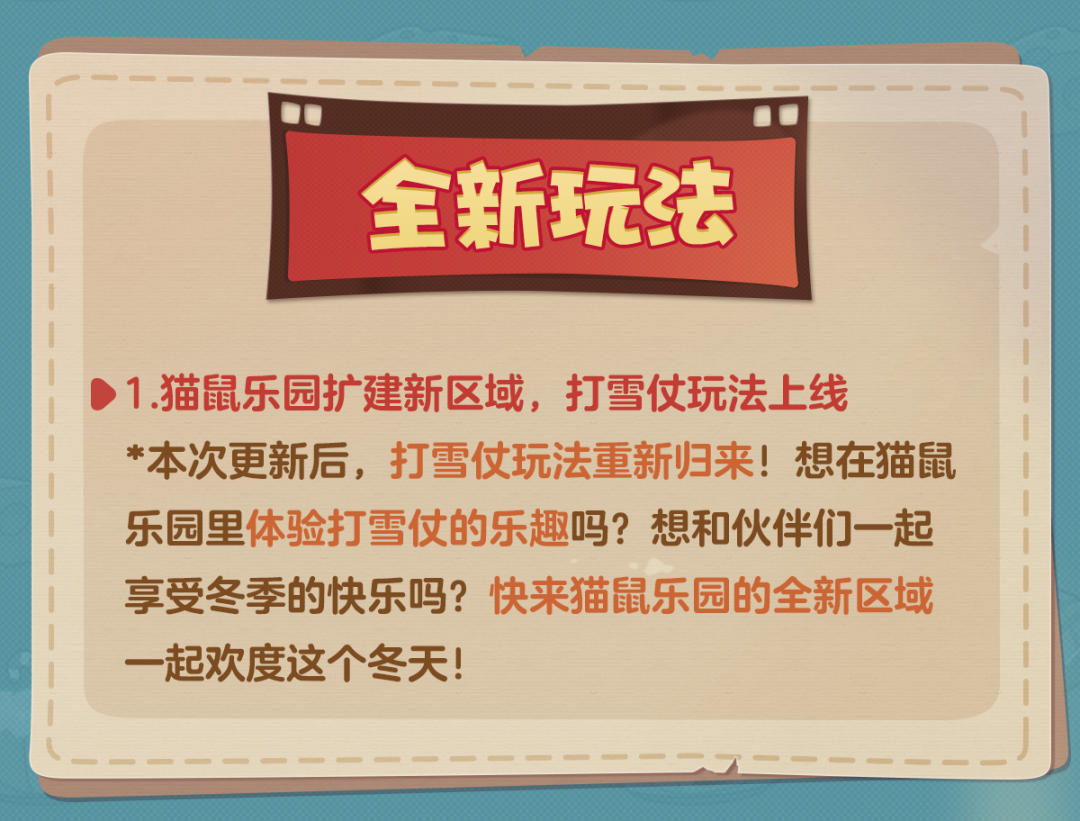 1.猫鼠乐园扩建新区域,打雪仗玩法上线