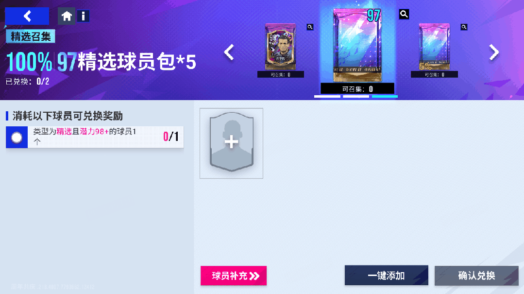 【97精选随机包】阵容召集挑战将于2025年12月30日11时至2026年1月2日11时开启,活动期间每日可进行2次召集挑战,按条件使用1个98精选球员进行召集,可拆分获得5个【97精选随机包】。