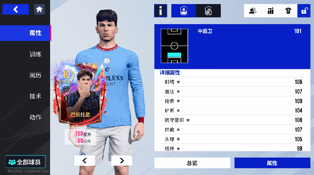 后防核心利刃,绿茵坚固屏障!101 潜力巴斯托尼镇守赛场荣光!