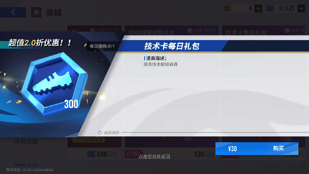 【技术卡每日礼包】每日限购1次,购买可获得技术卡*300,仅需30元!