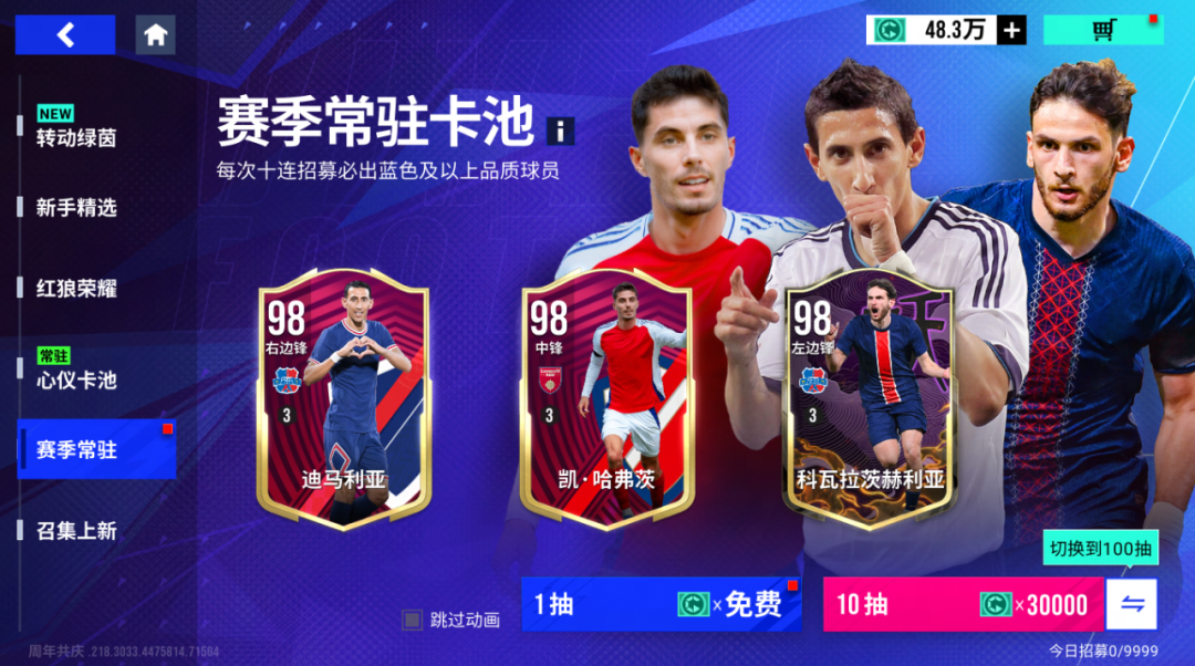 【赛季常驻】新增98精选迪马利亚、98精选凯·哈弗茨、98精选科瓦拉茨赫利亚