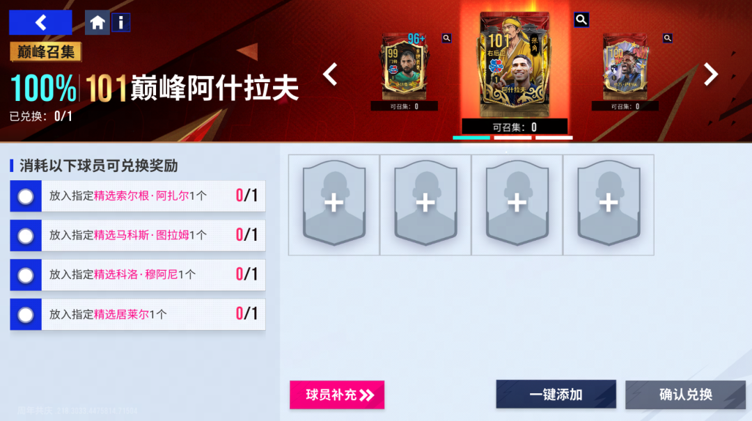 【101巅峰阿什拉夫】将于2026年2月6日11时至2026年3月13日11时开启,活动期间可进行1次召集挑战,按条件使用4个指定100精选球员进行召集,必定获得【101巅峰阿什拉夫】。