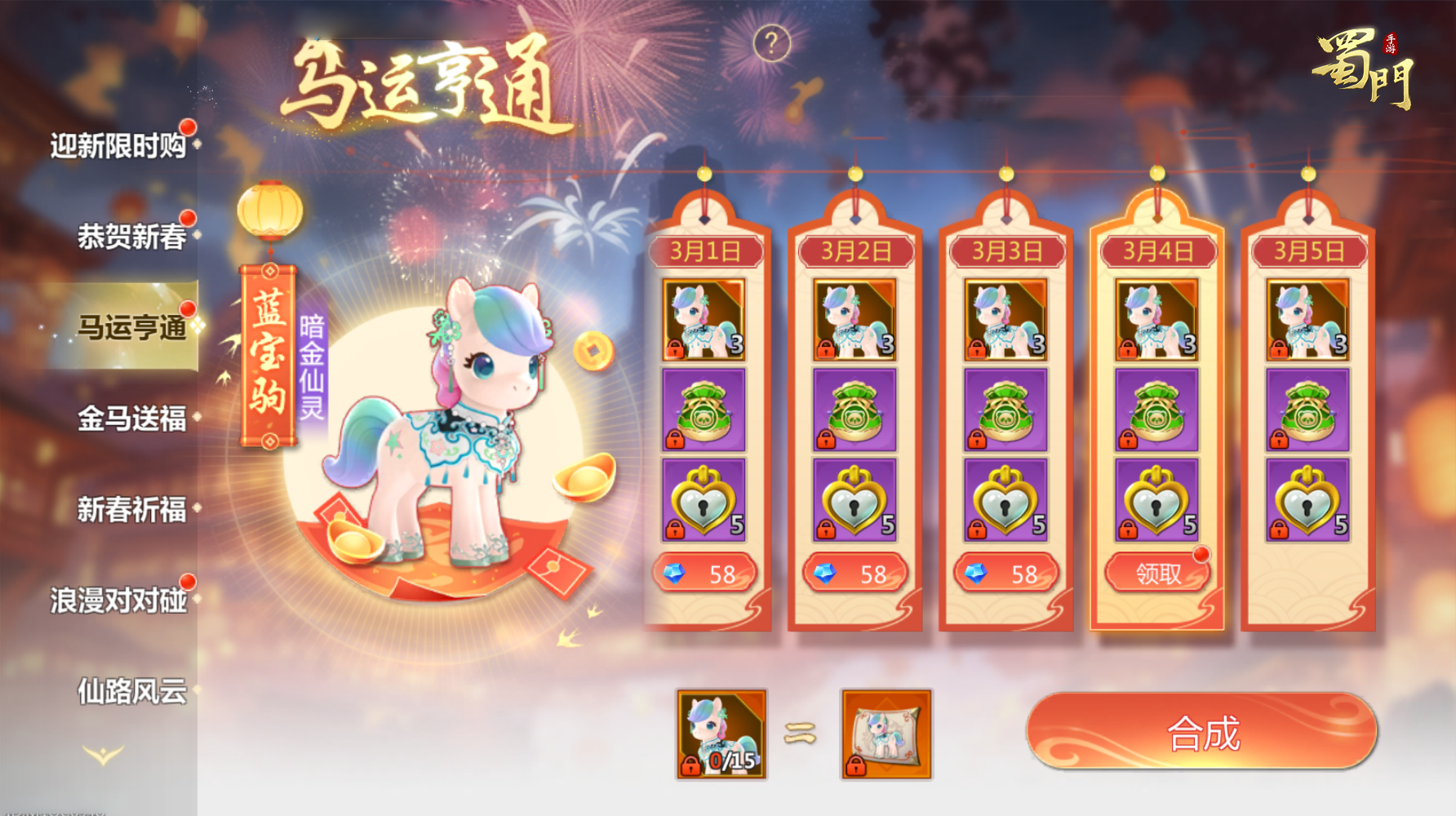 连续登录5天累计获得15个仙灵碎片即可合成