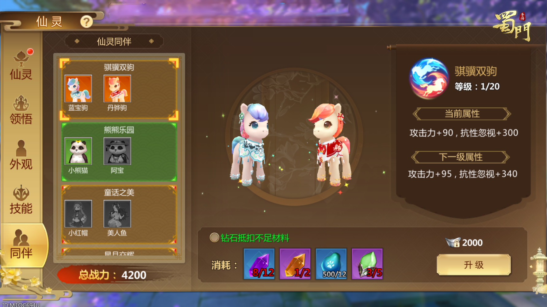 蓝宝驹与丹骅驹同时激活后可以获得额外的暗金仙灵同伴技能——骐骥双驹。可以提升攻击力和抗性忽视,并为角色提供不俗的战力加成。