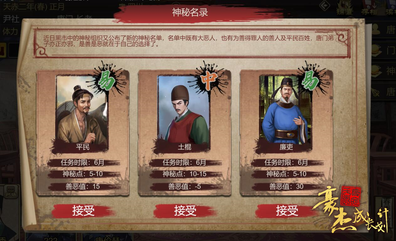 唐门神秘名单玩法,名单中既有大恶人,也有济弱扶倾的善人和白丁俗客