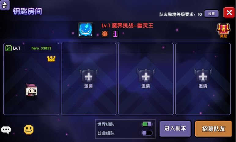 如果队长选择世界组队,则房间将会展示在钥匙组队房间。