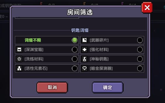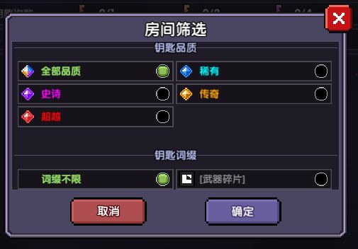 在这个界面里,勇者们可以筛选钥匙难度、钥匙词缀类型、钥匙品质等。筛选超越级钥匙的时候,还可以进一步筛选具体类型的钥匙。