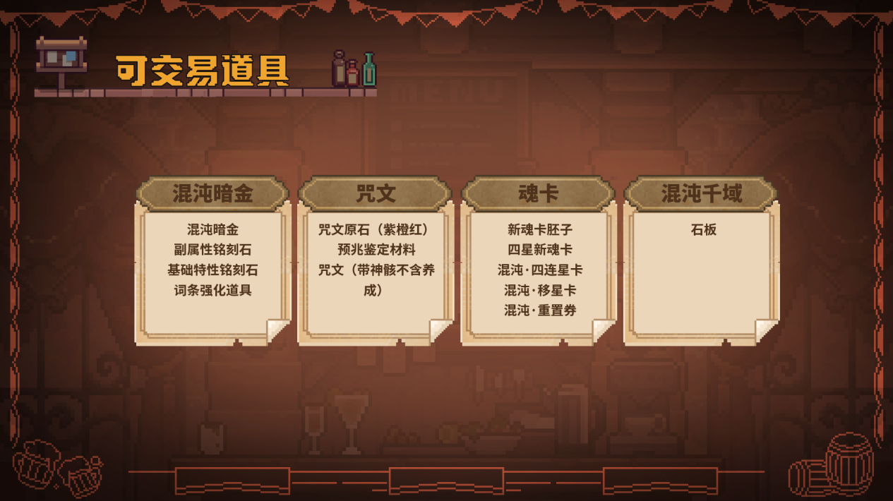 为了让在混沌千域内掉落道具和材料都更有价值,我们将在春节版本引入全新的“交易系统”。以上提到的大部分道具和材料,都是可以在交易系统内进行流通的