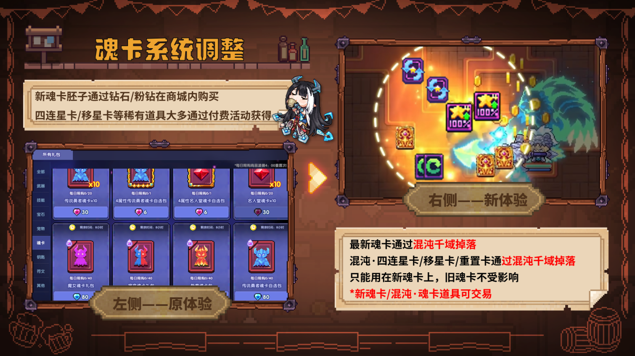 Q:除了春节版本外,魂卡后续的产出是否还在混沌千域?如果是这样的话,后续的所有老魂卡都会被替代。还是说商城内的常规魂卡也会继续推出?