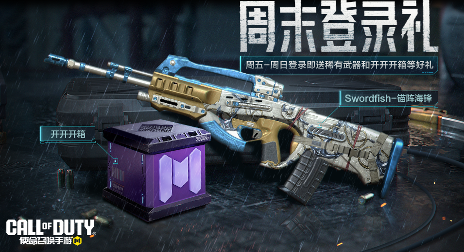 ● 【周末登录礼】再度来袭,登录游戏,就能获得稀有级武器Swordfish-锚阵海锋;