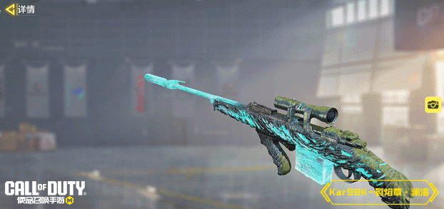 Kar98K-裂焰章·澜海的枪身仿佛大海的波澜,纹理宛如海水层层叠叠的痕迹,深邃而灵动。