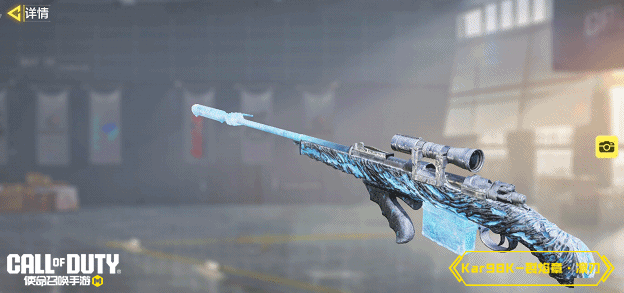 Kar98K-裂焰章·凛刃的枪身覆盖着寒冰,刀斩一般的纹理带来冷冽的气息。