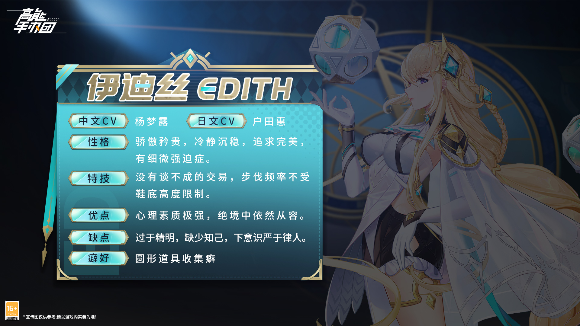 伊迪丝在这个世界中有着举足轻重的地位,是「奥古斯都」第十三任继承人,也是家族旗下「真理祈愿会」的唯一掌权者,同时也凭借谈判桌上的优雅和手段,她如女王般始终立于不败之地,并为中央大陆书写着,只属于「奥古斯都」的传奇。