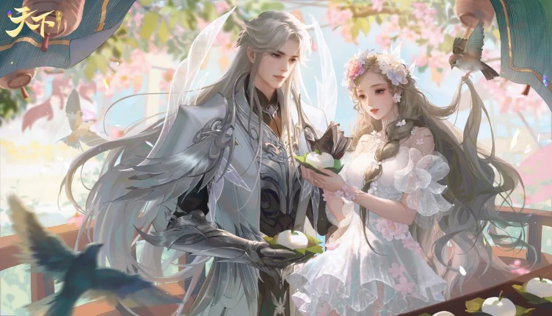 女装一袭闪耀的现代式纱裙,层层白纱如云朵般飘逸,仿佛走进梦幻童话之中;男装一身银白色轻甲,金属质感将少侠的的力量与坚毅完美展现!二人共同描绘出一副令人心动的甜蜜画面,快准备好穿上新时装与TA共览这人间好河山吧~