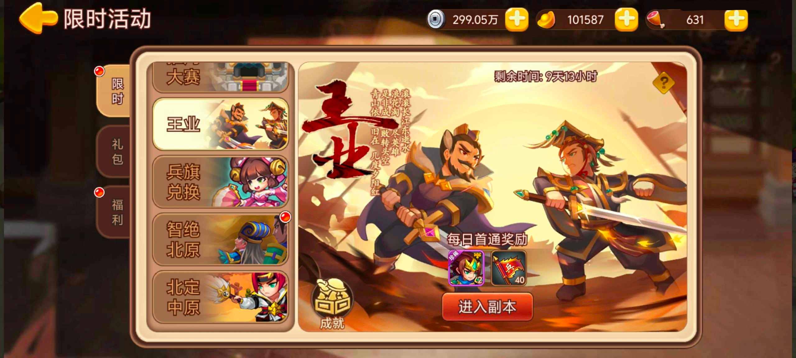活动内容:活动期间开放“王业”限时副本,每日首通获得奖励。