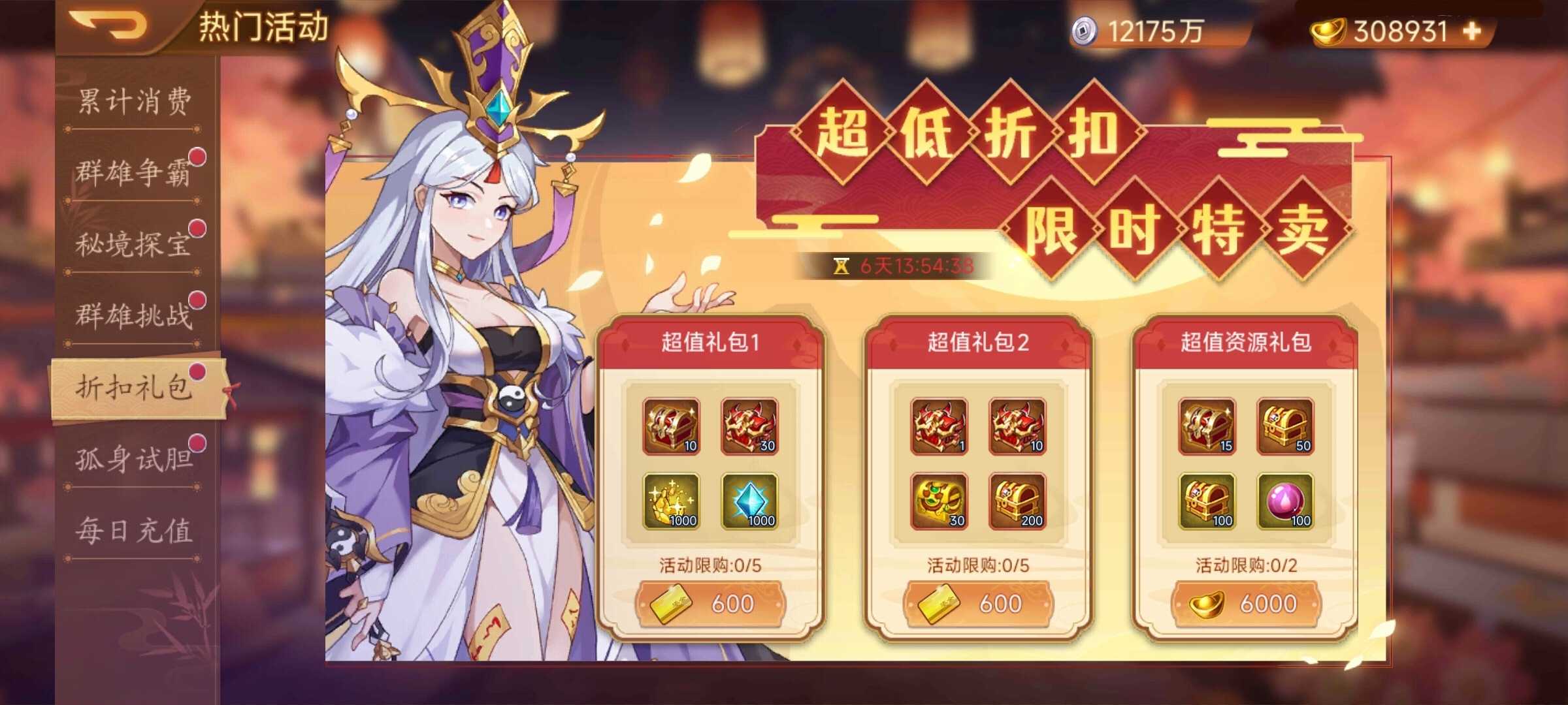 活动内容:活动期间,超值礼包限量折扣出售。