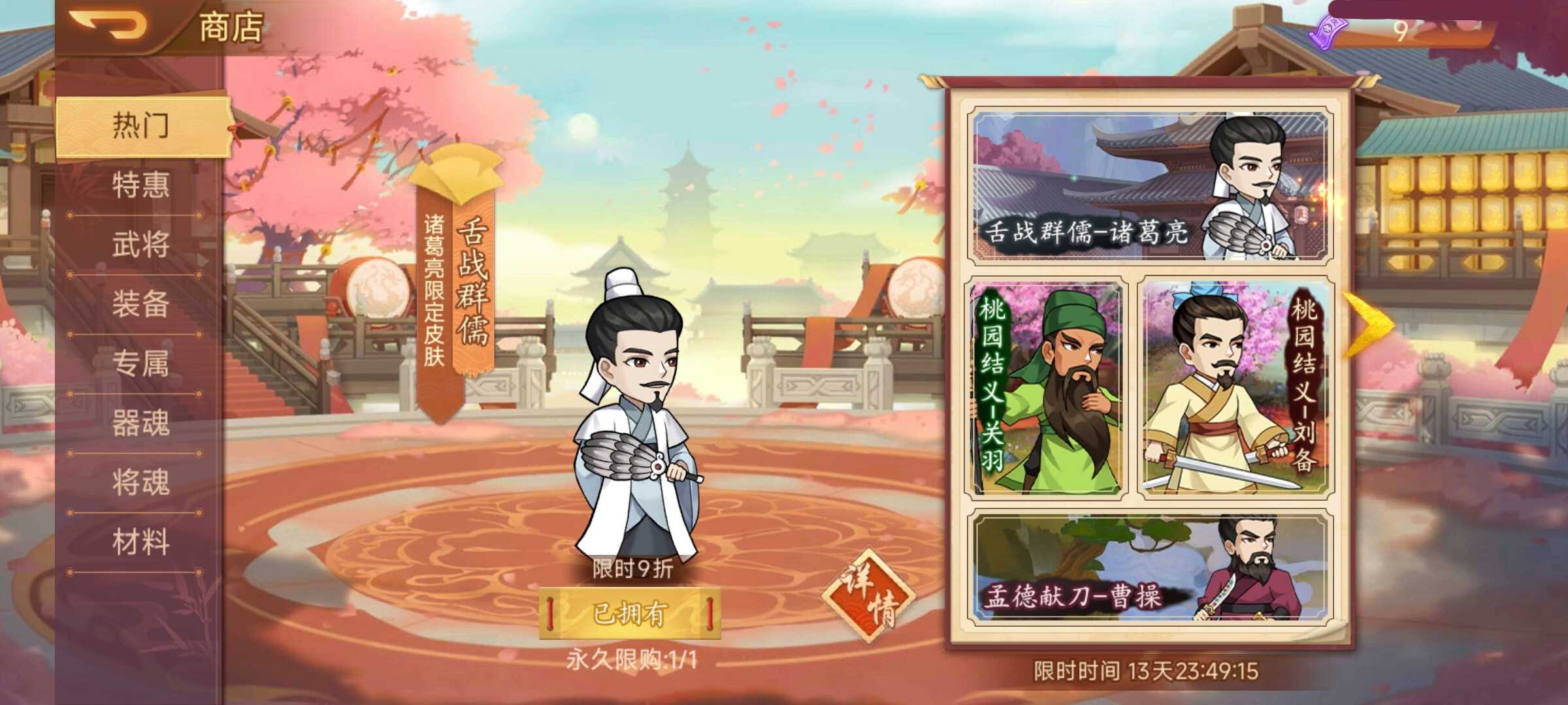 活动内容:孔明,张飞,关羽,曹操限定皮肤商城热卖!
