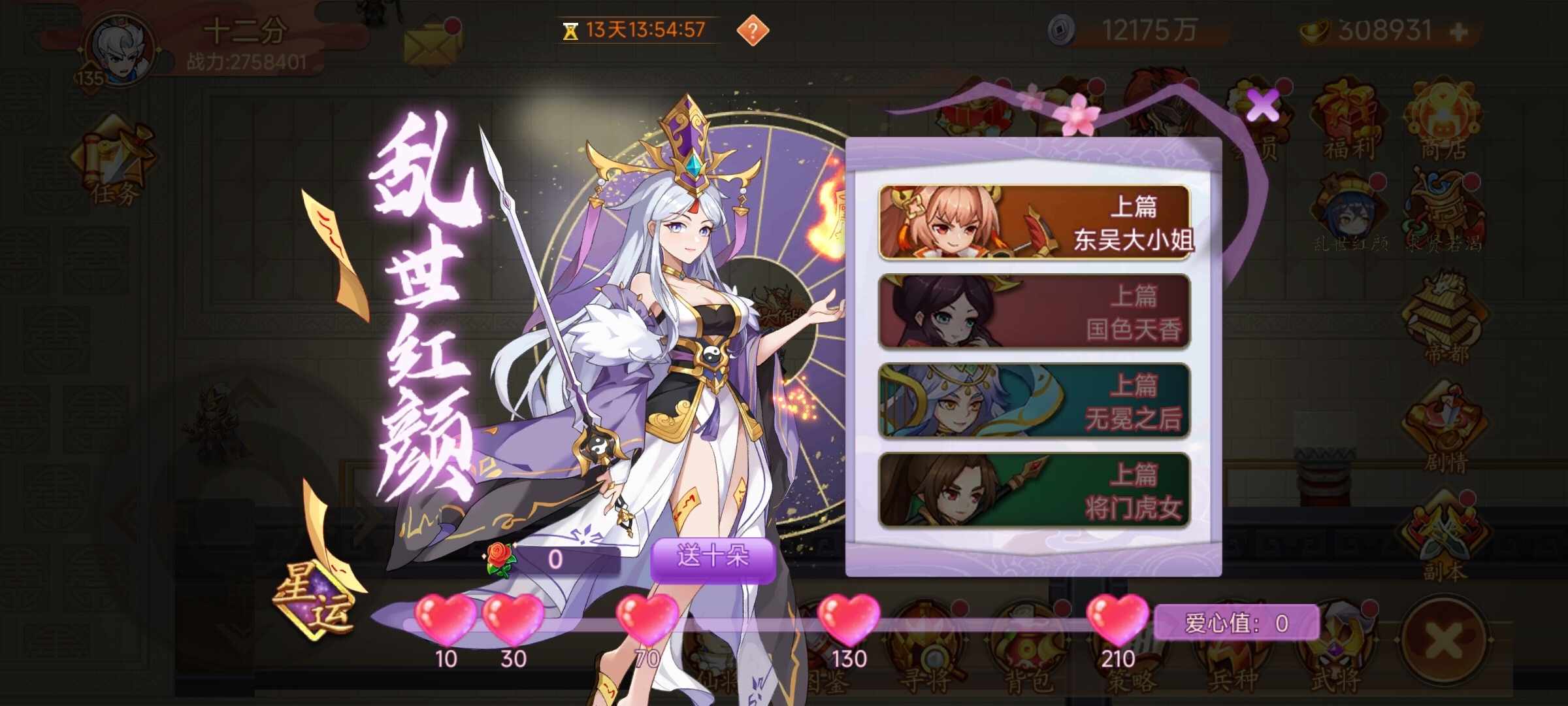活动内容:活动期间,完成乱世红颜剧情副本挑战收集玫瑰花,赠送玫瑰花获取爱心值领取奖励。(活动结束时未使用的道具“玫瑰花”将会被过期清除)