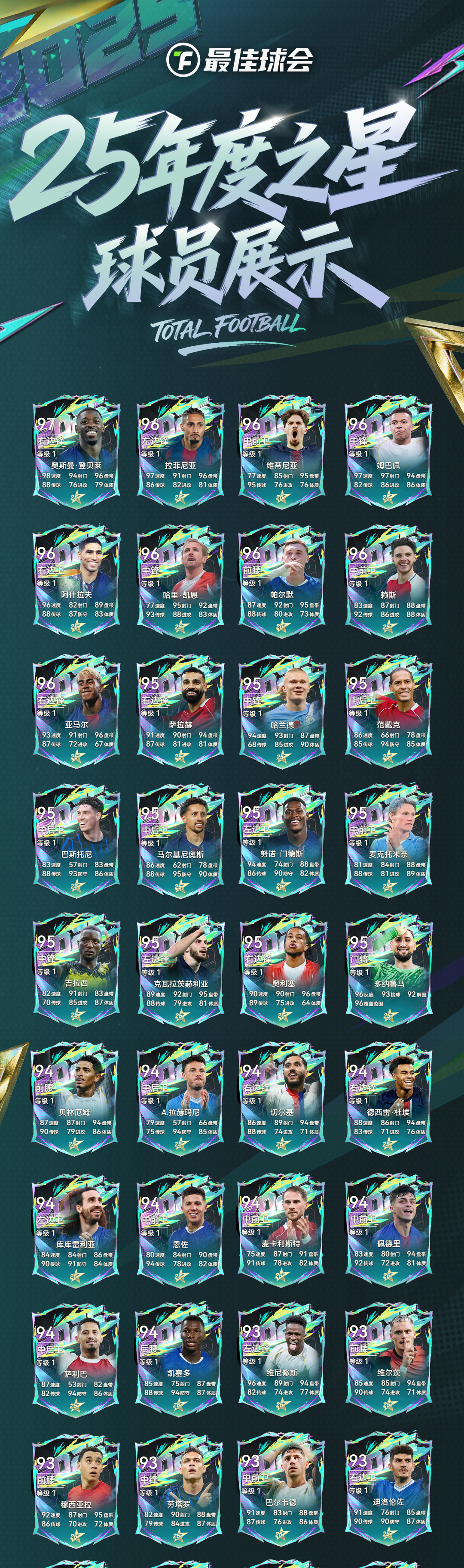 真正的荣耀,需要经过时间的淬炼!2025年度之星主题球员即将登陆《最佳球会》!入选球员需斩获官方奖项——如登贝莱荣获金球奖与世界足球先生,姆巴佩揽获欧洲金靴并追平C罗自然年进球纪录。他们是摧城拔寨的射手王、运筹帷幄的中场大师、一夫当关的铁血后卫……球员们的能力值与特性,都依据其2025全年高光表现重新定义。即刻打造年度阵容,为你的冠军之师加冕!