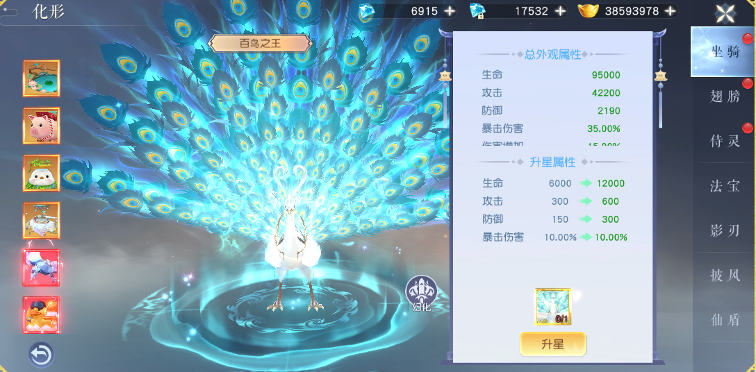 除了培养解锁的坐骑外形,通过外观也能改变坐骑的外形,而且外观种类众多,有酷炫浮光神凰,南冥天鲲的坐骑应有尽有,也可以通过化形方式选择你喜好的酷炫外形。