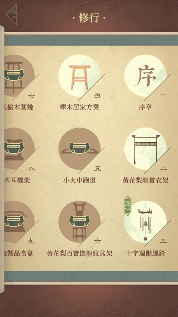 在公测版本中,玩家们能体验到古典家具专题中的22个章节,超过40个关卡内容。每次完成一个章节,都能在“馆藏”板块收集到相应的家具图纸。