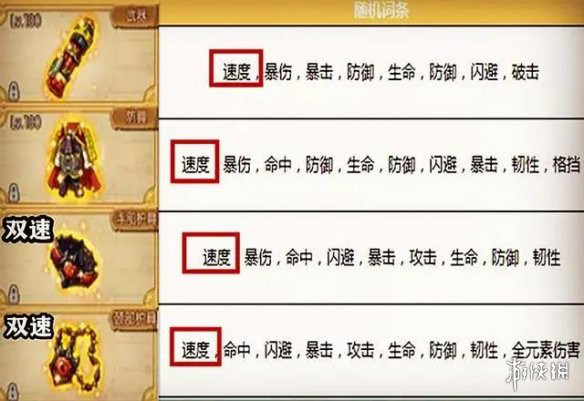 很多玩家更关心的是这套装备的词条,早前已经给出过,四件装备都有机会随机词条出速度,同时戒指和项链有固定的速度词条,所以是双速装。