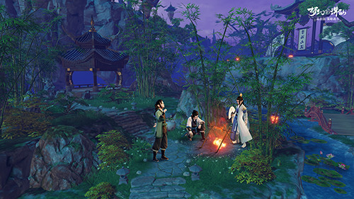 【天人合一的开放式书院,人与自然和谐共处】 《梦幻新诛仙》的弘文馆参考古代书院依山傍水的地理特色,采用天人合一的开放式设计,在场景中同时融合了自然环境与人文建筑,营造出人与自然和谐共存的书院氛围。教室书案摆放于山水之中,学习或休息都能欣赏到河阳城的美景;书院后方开辟了池塘和一小片空地,清幽的环境既方便修行也能体验游山玩水的快感,给书院生活增添不少乐趣。