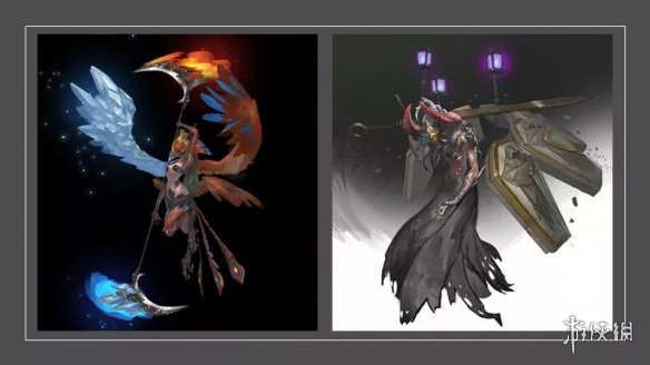 左边这位是患有人格分裂症的不死鸟安卡叶尔,两半翅膀和双色的镰刀已经昭示了它的冰火双属性。