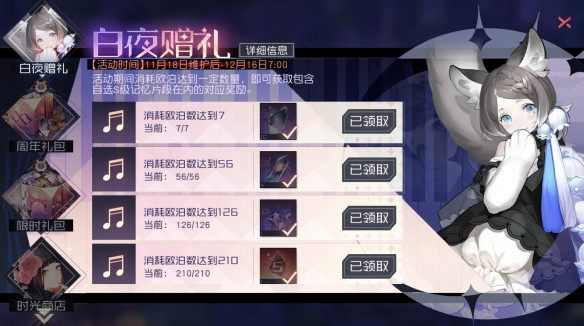 指挥使在活动期间消耗欧泊达到一定数量,还可获取包含自选S级记忆片段等奖励。另外,猫耳礼盒、黄金伞充值返利、主线礼包、周年礼包等庆典活动正在限时开启,为你拉开庆典的帷幕。