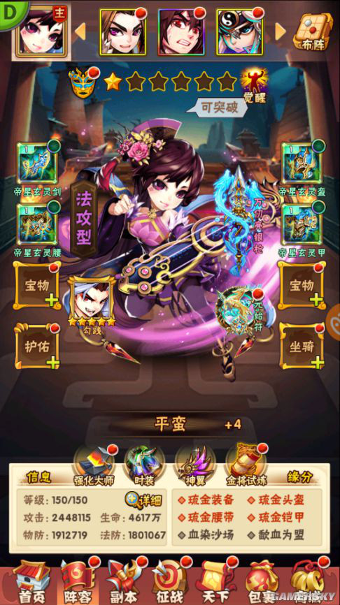 玩家通过消耗红、暗金、彩金装备碎片,使琉金装备获得魂值,达到足够的魂值即可提升等级;强化、精炼、化金整合至注灵界面,玩家一键全部培养,解放双手!
