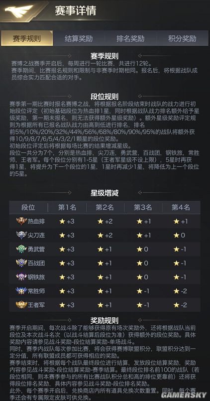 “赛博之战”会产出大量的赛博能量药剂、赛博联盟积分以及其他游戏道具,奖励分为单场结算和赛季结算两种,单场战斗结束后会根据段位、战队排名、个人积分发放奖励;在赛季结束后,会根据战队排行、个人积分发放结算奖励。赛博联盟积分可在积分商店中兑换各种游戏道具。更值得一提的是,本次引入的S1赛季玩法,将会划分7个段位,战队通过比赛获得的积分来晋升不同的段位,最终也能拿到不同段位的奖励,段位越高,奖励也会越丰富。