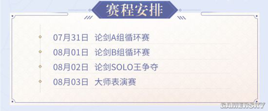 在论剑赛中,选手们互为对手,但是在大师赛中,选手们将按照论剑赛的分组作为团队去进行大师赛的表演赛;表演赛为A组 VS B组,于8月3日进行一场bo5的表演赛,胜者队伍为大师赛王者战队并拿到 10,000元的团队奖励。